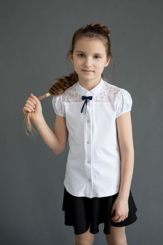 Блузка на кнопках для девочки с кружевом