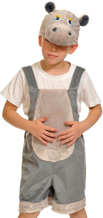Карнавальный костюм для мальчика Бегемотик плюш от Карнавалофф — выполнен в приятном сером цвете из мягкой плюшевой ткани.