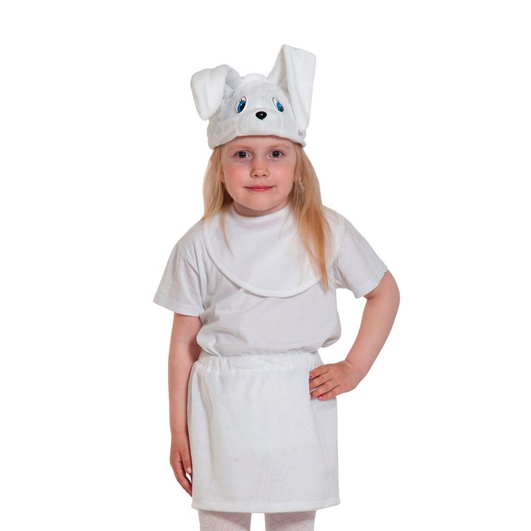 Карнавальный костюм для девочки Зайка из плюша - образ милого белого пушистика, который очарует всех на новогодней елке.