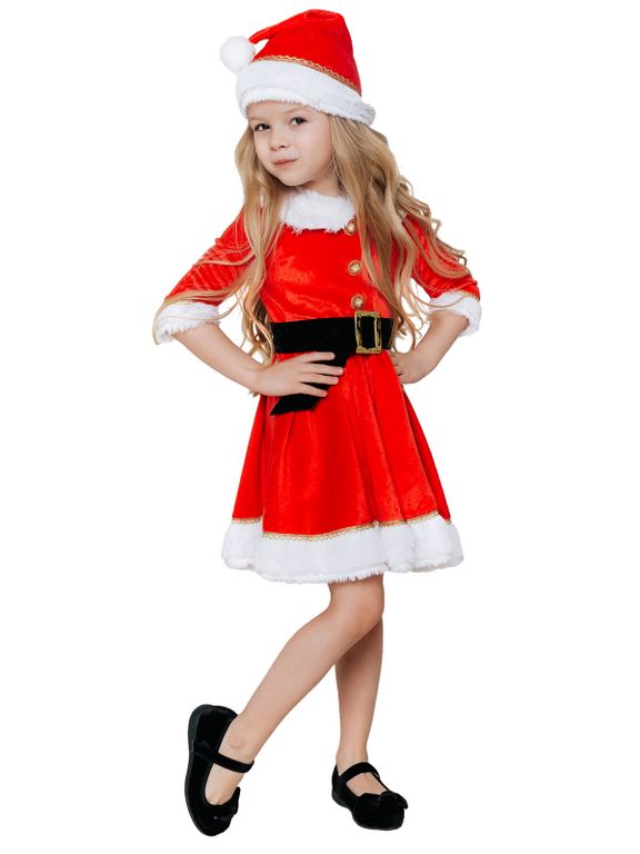 - Платье красное с белой оторочкой, длина средняя