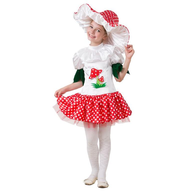 Карнавальный костюм «Грибок- девочка», текстиль, (платье, шапка) превратит вашу малышку в очаровательную представительницу лесного царства.