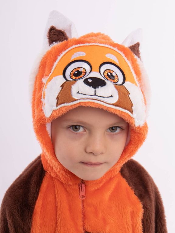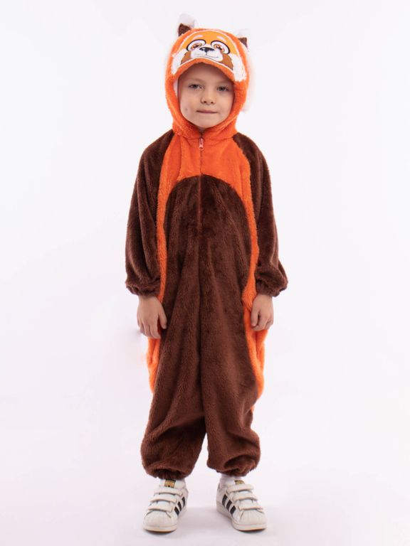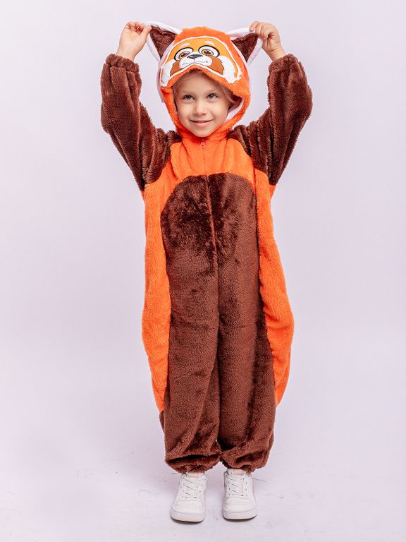 Костюм Красная Панда детский представляет собой кигуруми. Капюшон с фетровыми нашивками, застежка-молния по центру спереди, длинные рукава и брючины. Милый меховой костюмчик-комбинезон подойдет для самых разных праздников.
