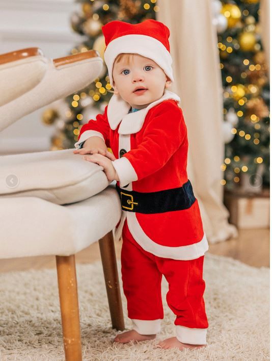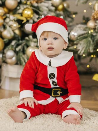 - Красный цвет с оторочкой белым рукавов, воротника, нижней части кофты и брюк