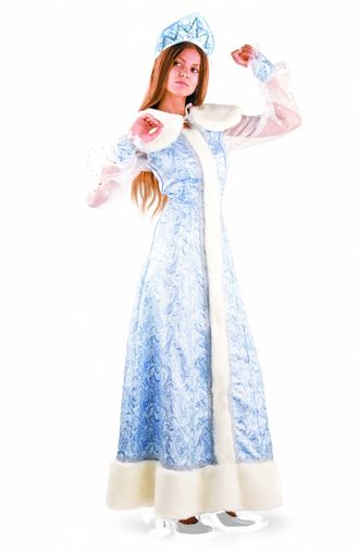 Взрослый карнавальный костюм "Снегурочка" из шелка.