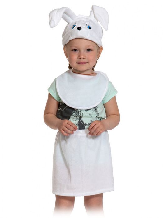 Карнавальный костюм для девочки Зайка из плюша - образ милого белого пушистика, который очарует всех на новогодней елке.