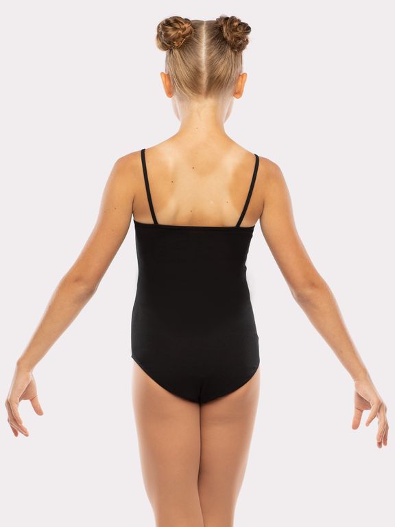 Модификация на узких и тонких лямках имеет спереди неглубокий округлый вырез, спина закрыта до серединной линии лопаток.