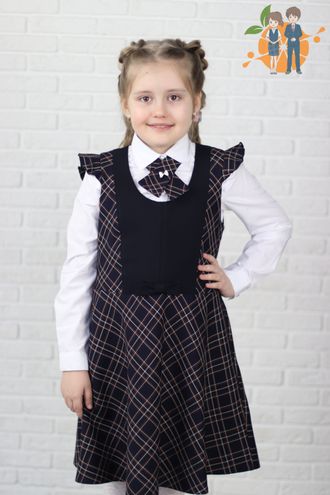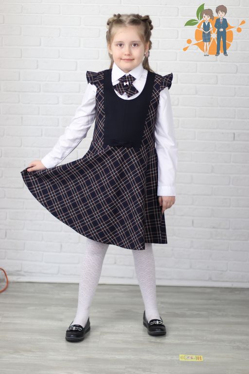Сарафан с крылышками, юбкой полусолнце, для начальной школы