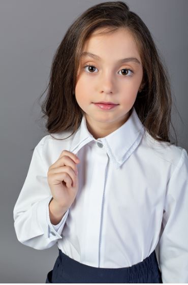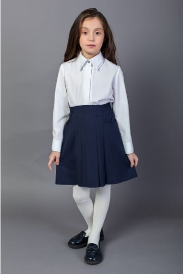 Блуза для девочки дл.рук., прямого силуэта с двойным воротником и манжетами.