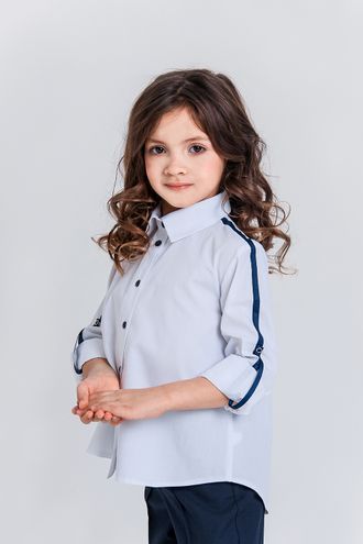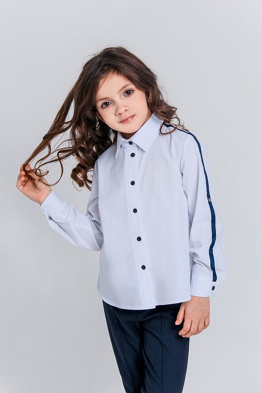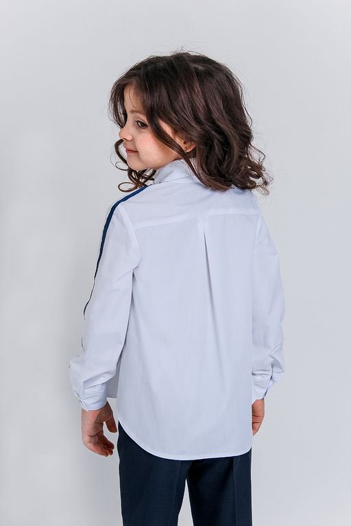 Вдоль плечевого шва и рукава притачана синяя репсовая лента.