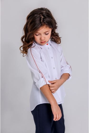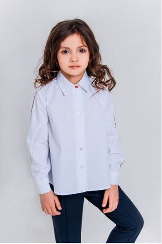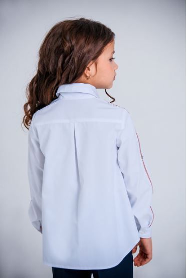 Вдоль плечевого шва и рукава притачана красная репсовая лента.
