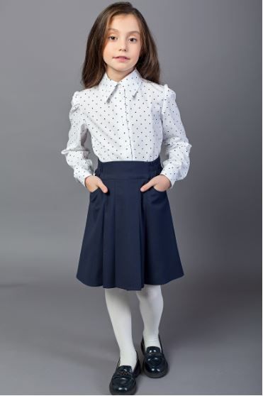 Белая блузка в горошек на планке.