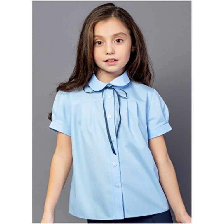 Блузка голубого цвета с защипами.