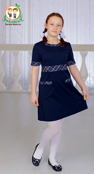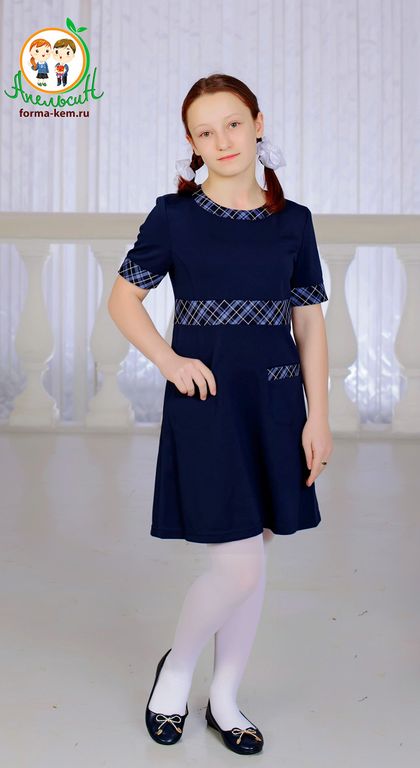 Платье с отделкой в клетку для 5-9 классов.