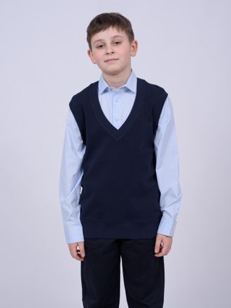 Школьный джемпер-обманка для мальчика оптом с имитацией рубашки выполнен из качественного хлопкового трикотажа.