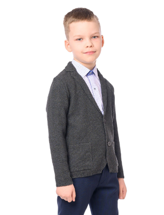 При этом школьный кардиган имеет деловой и официальный вид и его можно рассматривать в качестве альтернативы пиджаку - однобортный, на трех пуговицах, снабжен накладными карманами.