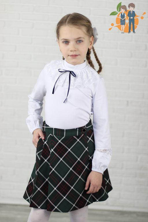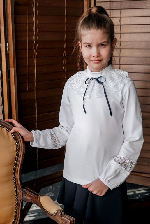 Водолазка из трикотажного полотна, со съемным кружевным жабо, вставкой из кружева по рукаву.